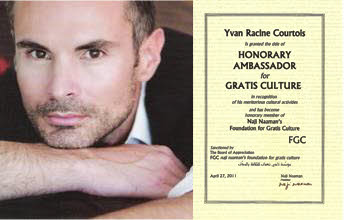 Yvan Racine Courtois, poète, pianiste et globe-trotter français, Prix Littéraire Naji Naaman (prix de créativité, 2009), vient d’être nommé Ambassadeur Honoraire pour la Culture Gratuite par la FCG.