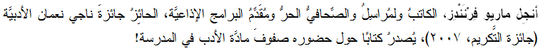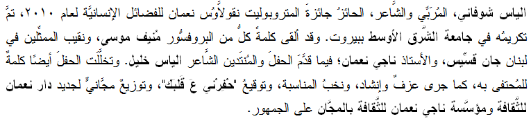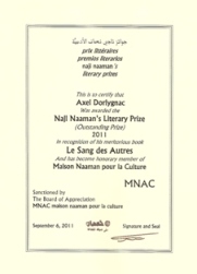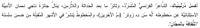أكسِل دُرْلينْياك وجائزةُ ناجي نعمان الأدبيَّة الاستِثنائيَّة