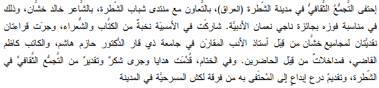 التَّجمُّعُ الثَّقافيُّ في الشّطرة يحتفلُ بخالد خشَّان