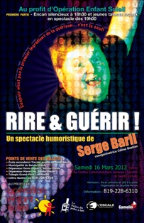 Serge Baril, Prix Littéraire Naji Naaman (prix de créativité, 2009), donne un nouveau spectacle humoristique intitulé «Rire et Guérir!» au centre communautaire Jacques Charette de Sainte-Ursule au Canada.