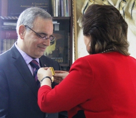 Le ministre de la Diaspora arménienne Hranush Hakobyan vient de remettre une décoration décernée par le président Serzh Sargsyan à Monsieur Naji Naaman.